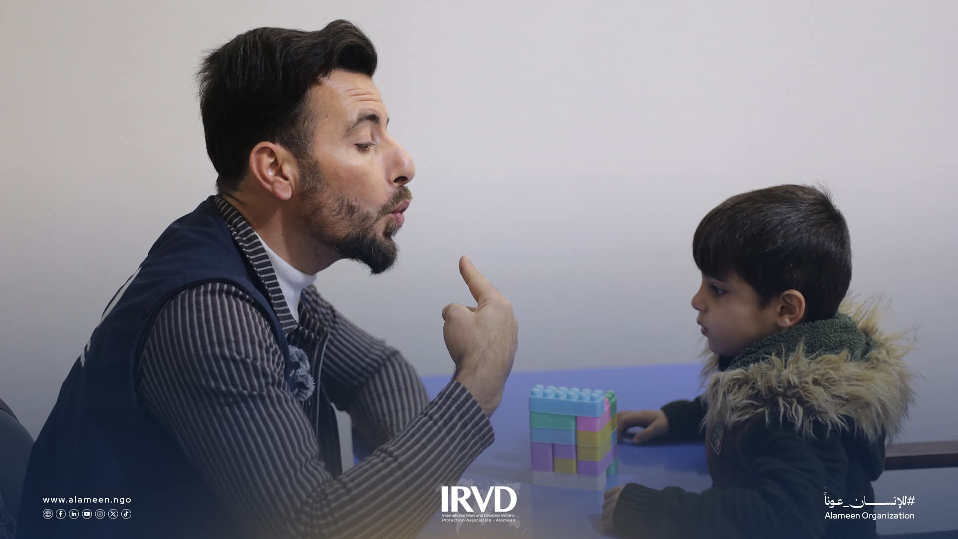 في مركز إعادة تأهيل السمع والنطق في إدلب، تتحوّل لحظات الصمت إلى بداية صوت، وتبدأ حكايات الأطفال مع الكلمة الأولى والأمل الجديد.هنا تواصل منظمة الأمين رعايتها للأطفال الذين خضعوا لعمليات زراعة القوقعة أو يعانون من ضعف السمع، عبر برامج تأهيل سمعي ونطقي متخصصة يشرف عليها استشاريون مختصون، وجلسات علاج فردية تراعي احتياجات كل طفل، لتمنحهم فرصة حقيقية للتواصل، والتعلّم، والاندماج في المجتمع بثقة.في هذا المكان، لا يُدرَّب السمع والنطق فقط… بل تُبنى جسور نحو الحياة، وتُزرع بذور الأمل في قلوب الأطفال وعائلاتهم، لتصبح كل كلمة تُنطق إنجازًا، وكل صوت يُسمع خطوة نحو مستقبل أجمل.